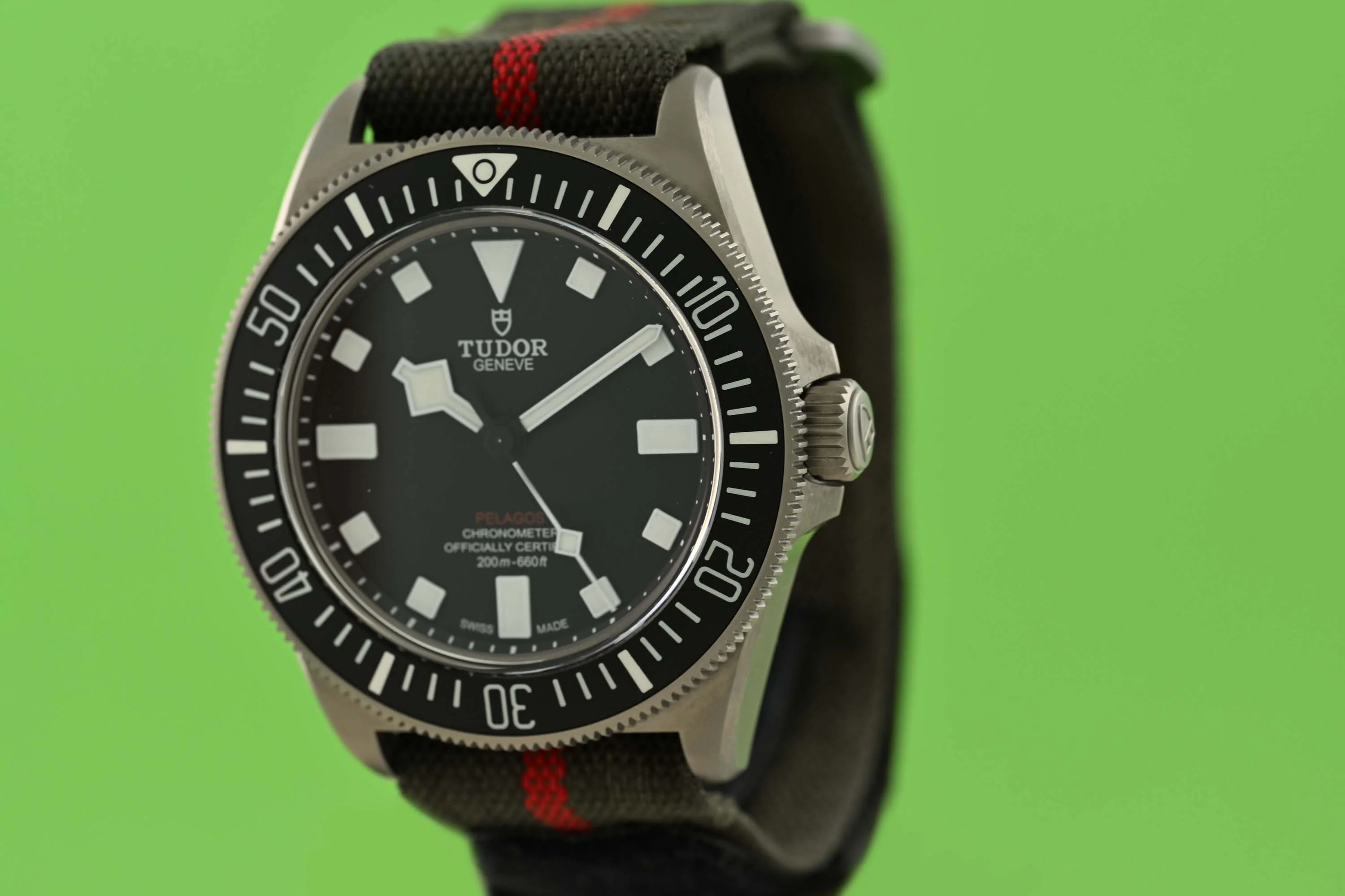 Herrenarmbanduhr TUDOR Pelagos FXD , Ref. 25717N, Automatik, Gehäuse in Titan mit Textilband und zusätzlichem Kautschukband, exzellenter Zustand, Kaufdatum November 2025, Box & Papiere.