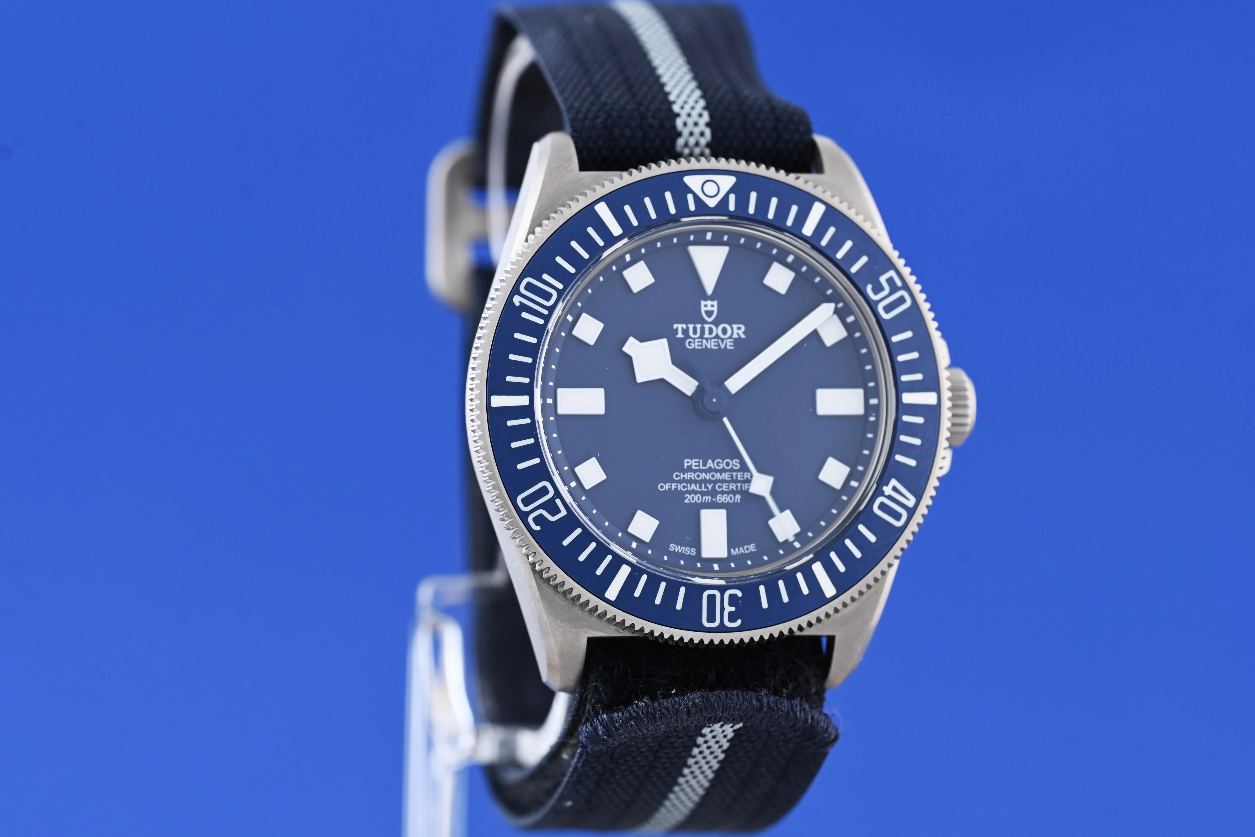 Herrenarmbanduhr TUDOR Pelagos FXD Marine National , Ref. 25707B/25, Automatik, Gehäuse in Titan mit blauem Textilband, neu/ungetragen, Kaufdatum 2025, Box & Papiere. (inkl. 19% MwSt)